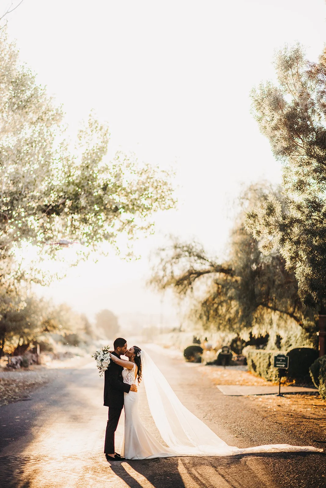 Even if you do a first look, we'll often steal you two away for 15 or so minutes before sunset for some golden hour magic. The lighting is dreamiest about an hour before sunset, and - it's 100% worth taking advantage of. This usually happens during dinner or the reception, and your guests won't even notice we're gone!