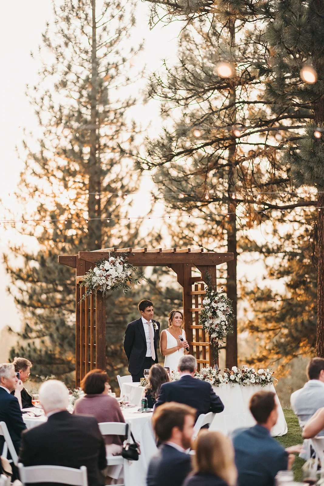 Okay, our best tip for speeches: limiting the time per speech — there's nothing worse than a speaker going on a 10-minute tangent while everyone just wants to get up and start dancing! 3-5 minutes per speech is typically a good sweet spot.